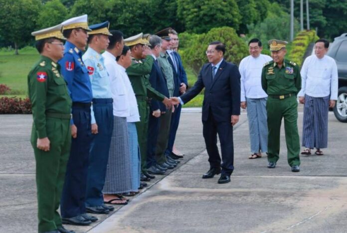 [애드쇼파르] 러시아 대통령 푸틴의 공식 초청으로 민아웅흘라잉 위원장이 2025년 9월 24일 네피도 군공항에서 특별기편으로 모스크바에서 열리는 World Atomic Week 2025 참석을 위해 러시아로 출국하였다.