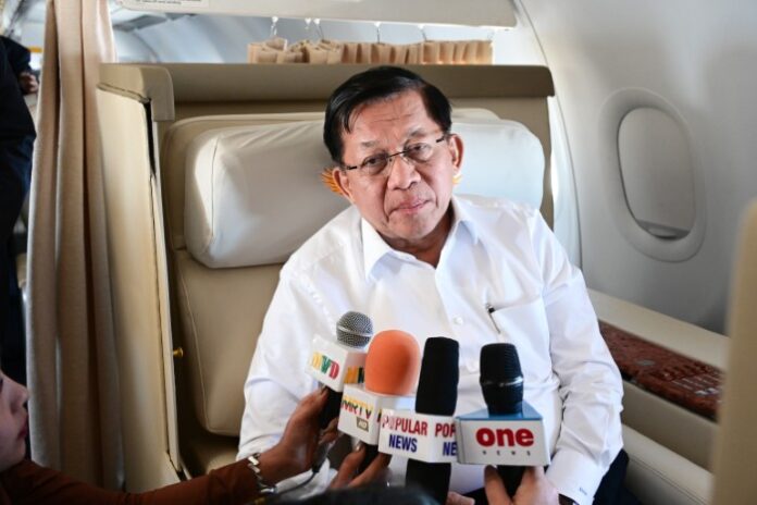 [애드쇼파르]  2025년 9월 29일, 민아웅흘라잉 위원장이 러시아 푸틴 대통령과 카자흐스탄 대통령 Kassym-Jomart Tokayev의 초청을 받아 미얀마 대표단과 함께 두 국가를 공식 방문하고 귀국편 비행기에서 기자회견을 진행하였다.
