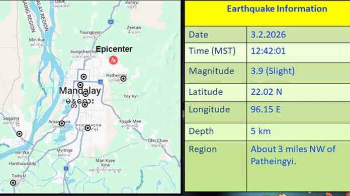 [애드쇼파르] 2026년 2월 3일 밤, 미얀마 라카인주 Ann 타운십과 막웨 지역 Sidoktaya 타운십 인근에서 각각 규모 5.9와 5.2의 지진이 발생하였다.