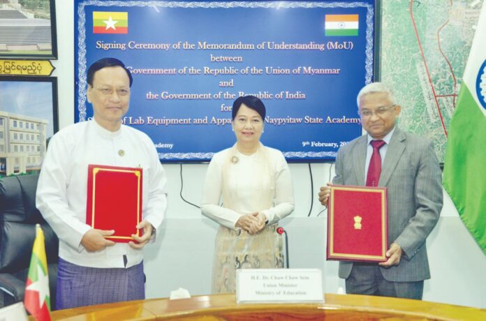 [애드쇼파르] 2026년 2월 9일, 네피도에서 미얀마-인도가 Naypyitaw State Academy(네피도 주립대학교)의 실험실 장비 및 연구기기 지원을 위한 상호 이해 양해각서(MoU)에 공식 서명하였다.