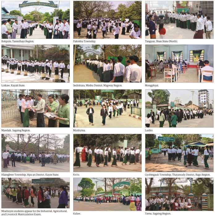 시험은 네피도를 비롯한 전국의 행정구역별 지역, 타운십 총 887개 시험센터에서 일제히 시행되었으며, 남학생 112,191명과 여학생 156,562명을 포함한 총 268,753명이 미얀마어 과목에 등록한 것으로 확인되었다.